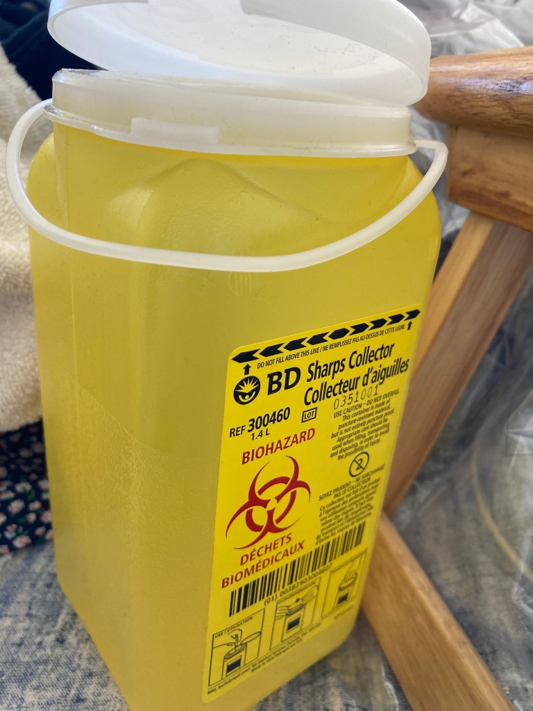 I haven’t found the finger pricking painful – early on I did have a few times where I would prick my finger and no blood would come out, I’d prick another finger and the same again. One day, it took 20 minutes to get a large enough spot of blood to actually complete the test! Not painful, just very tedious! I had to spend about $100 on lancets (needles), a sharps container, ketone sticks and blood test strips up front and will likely have to get another batch of lancets and blood test strips before the end of my pregnancy, but I am very grateful for the healthcare system here taking care of me each step of this pregnancy!